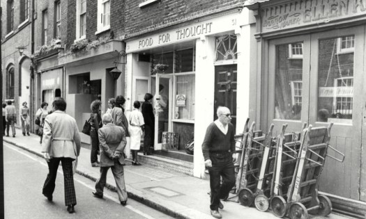 (Neal Street, Covent Garden, and the FOOD FOR THOUGHT vegetarian cafe in the 1980s, where we were first inspired to stop buying meat & fish)