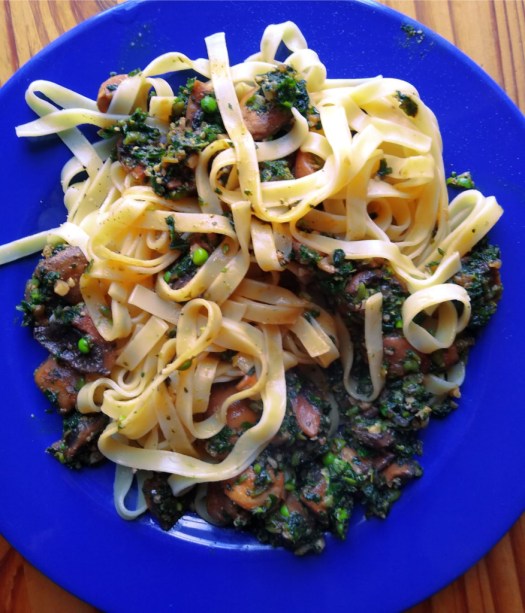 - kale pesto pasta with mushrooms
